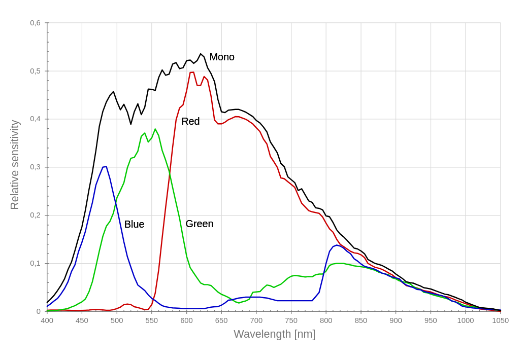 | Spectral sensitivity | 400 - 960 nm |