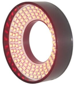V2DR-Si70B-C is a Direct Ring Light with surface mount LEDs designed for machine vision application. It has an Outer Diameter (OD) of 70mm and Inner Diameter (ID) of 35mm. with illumination area of 64mm in diameter It comes in 626nm wavelength Red.