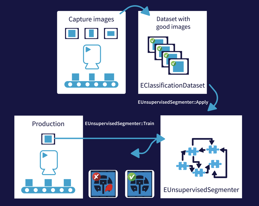- Unsupervised mode: train only with “good” images to detect and segment anomalies and defects in new images
