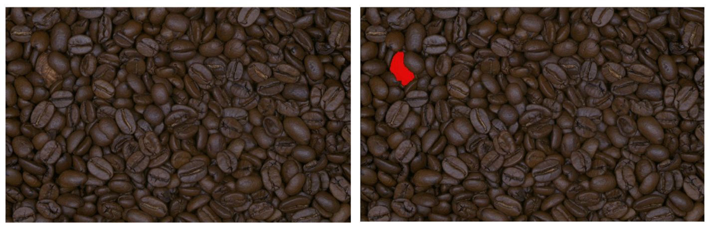 Our “Coffee” sample dataset shows how the supervised mode of EasySegment can be used to efficiently detect and segment foreign materials on a production line, even when the foreign materials’ color and texture are very close to the product of interest.