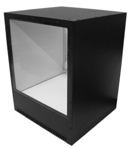 A half mirror/ Beam Splitter prism aligns the high-intensity, even light from the LED array to the same optical axis as the lens.