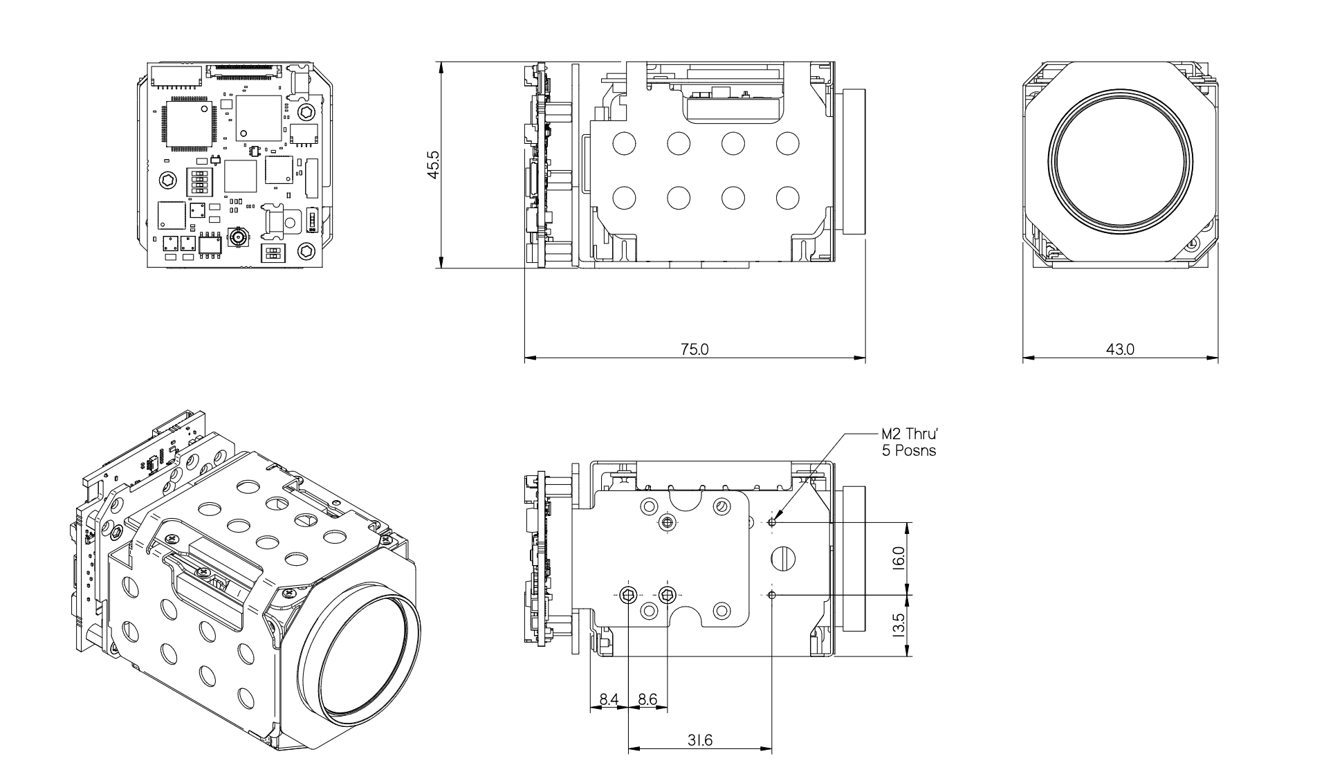 - TTL/RS-232 Serial VISCA, Pelco – D/P Control Protocol.