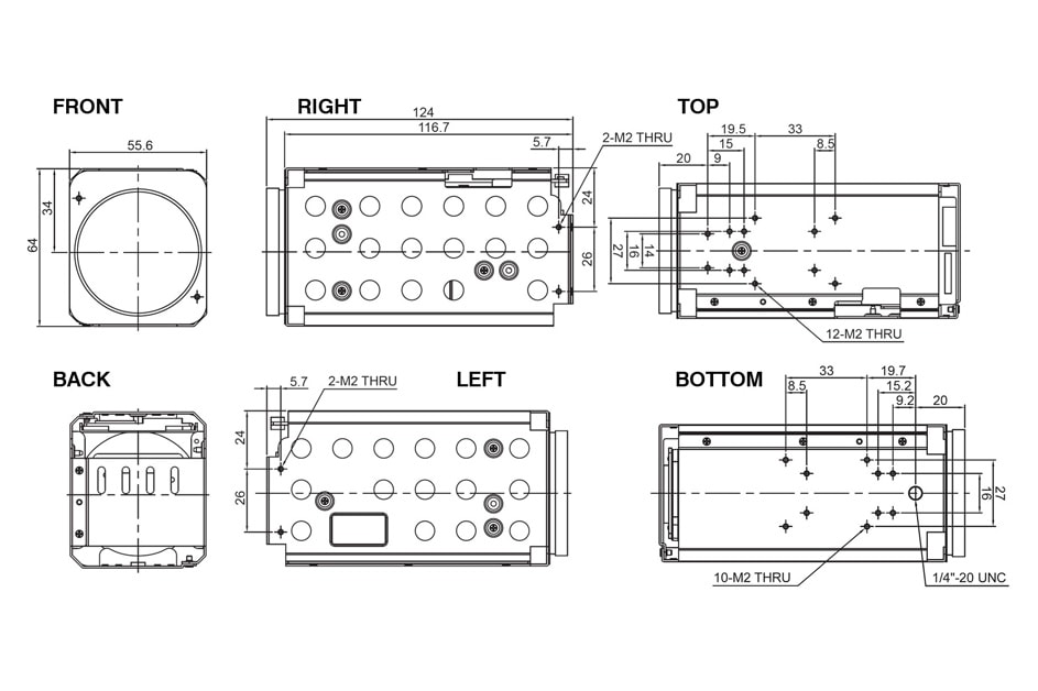 - Output: LVDS (single mode), EX-SDI, CVBS.