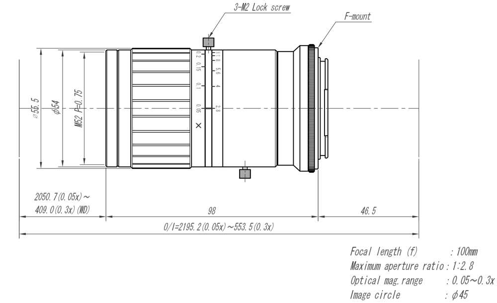 | Optical mag. range | ×0.05~×0.3 | |||
