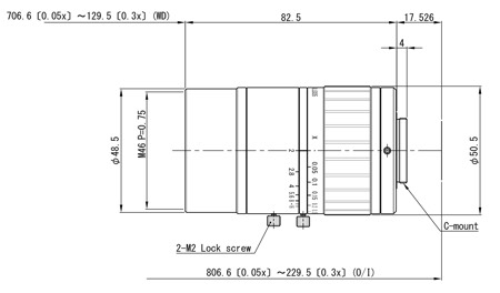 It supports up to 4/3” and C- mount camera. Designed for Distortionless and High resolution machine vision macro lens. It has 9 product line (f# range : 10mm-50mm) covers various angles of view. The floating system improves high performance with any magnification with reduced shading.