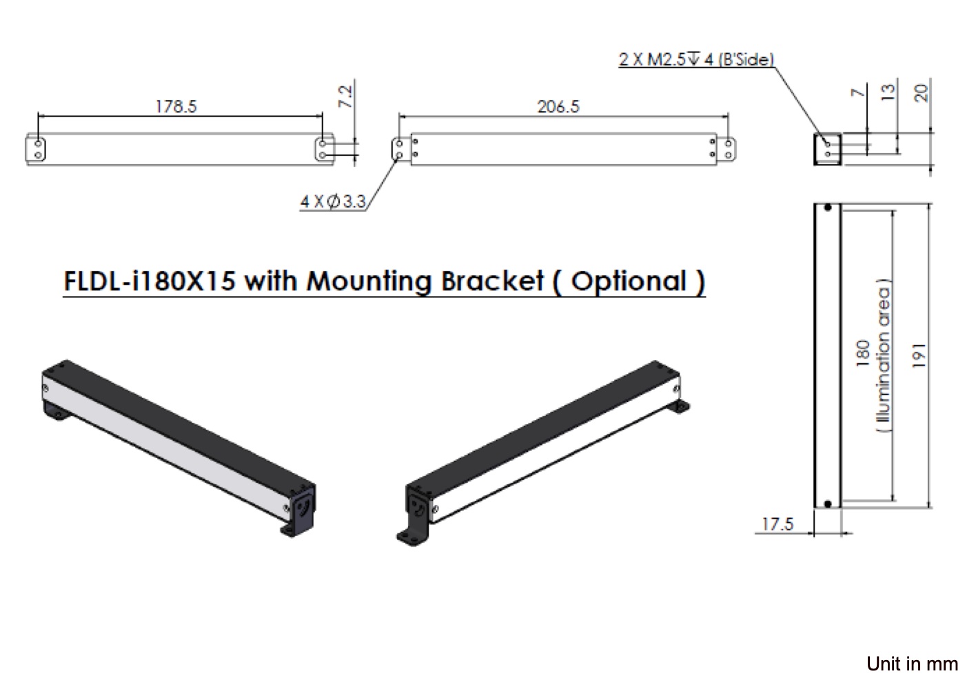 LEDs are arranged at a high-density on a single flat circuit board and the object can be illuminated from any angle desired. Suitable mounting brackets (15 mm width) are available.