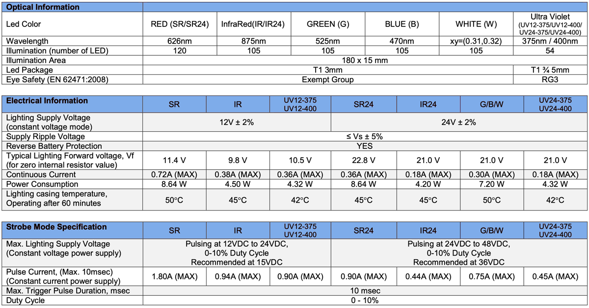 Models without Resistors : V2DL-i180x15-SR/SR24/IR/IR24/G/B/W/UV12-375/UV12- 400/UV24-375/UV24-400-O