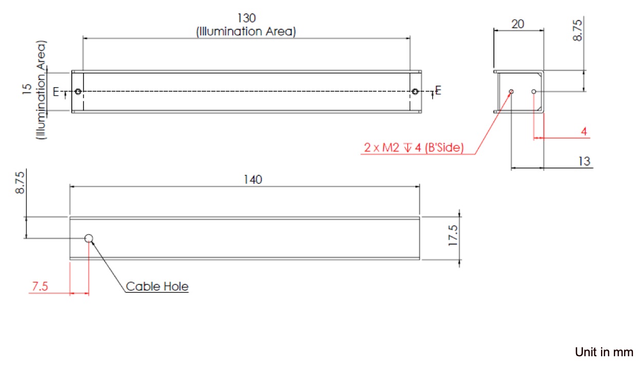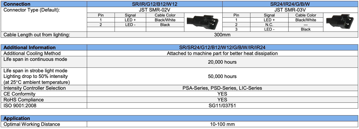 LEDs are arranged at a high-density on a single flat circuit board and the object can be illuminated from any angle desired. Suitable mounting brackets (15 mm width) are available.