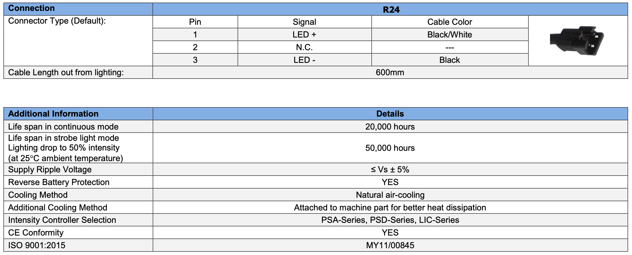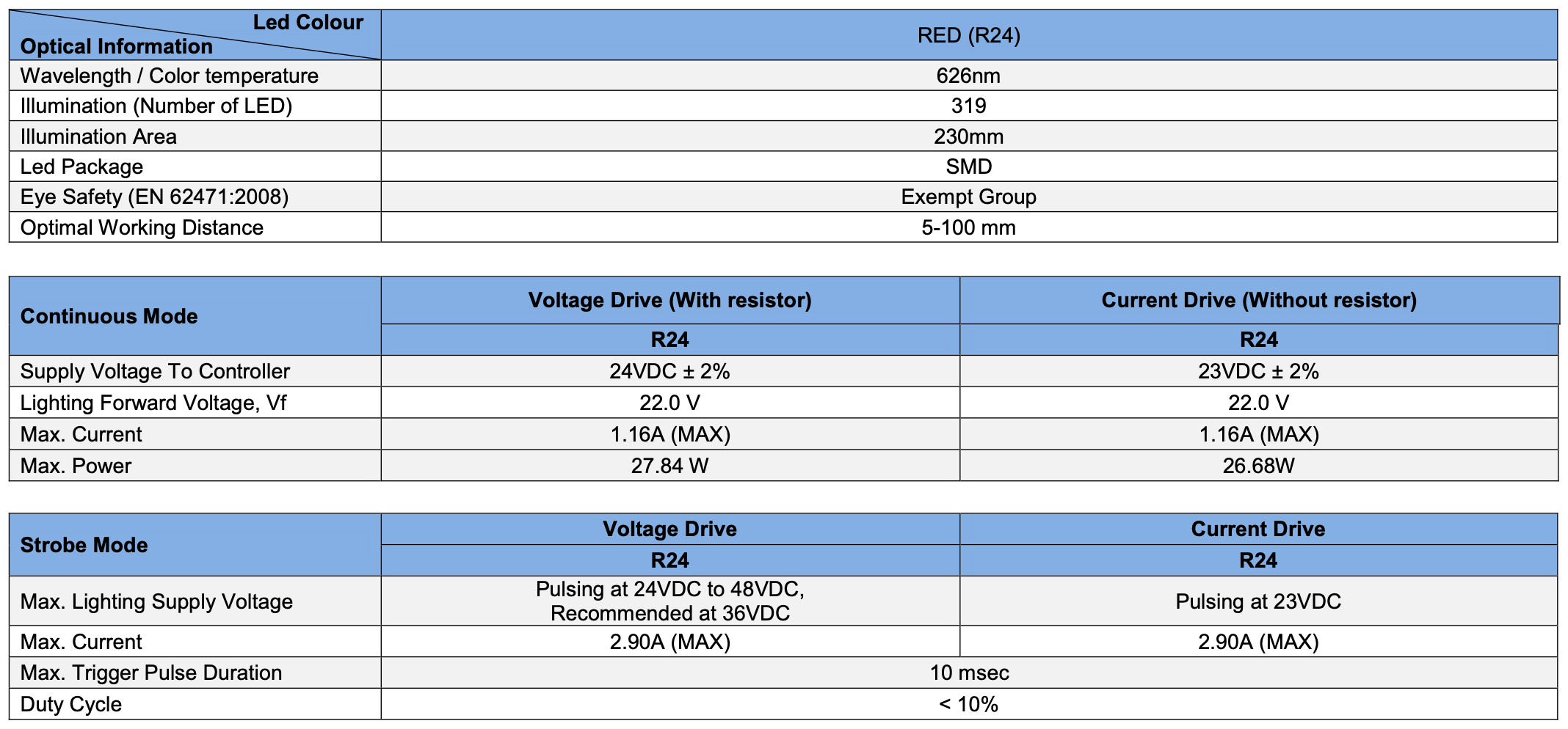 Example : Model for Red version with no resistor : “V2DL-TP-Si230-HC180-R24-O”, Model for Red version with resistor “V2DL-TP-Si230-HC180-R24”