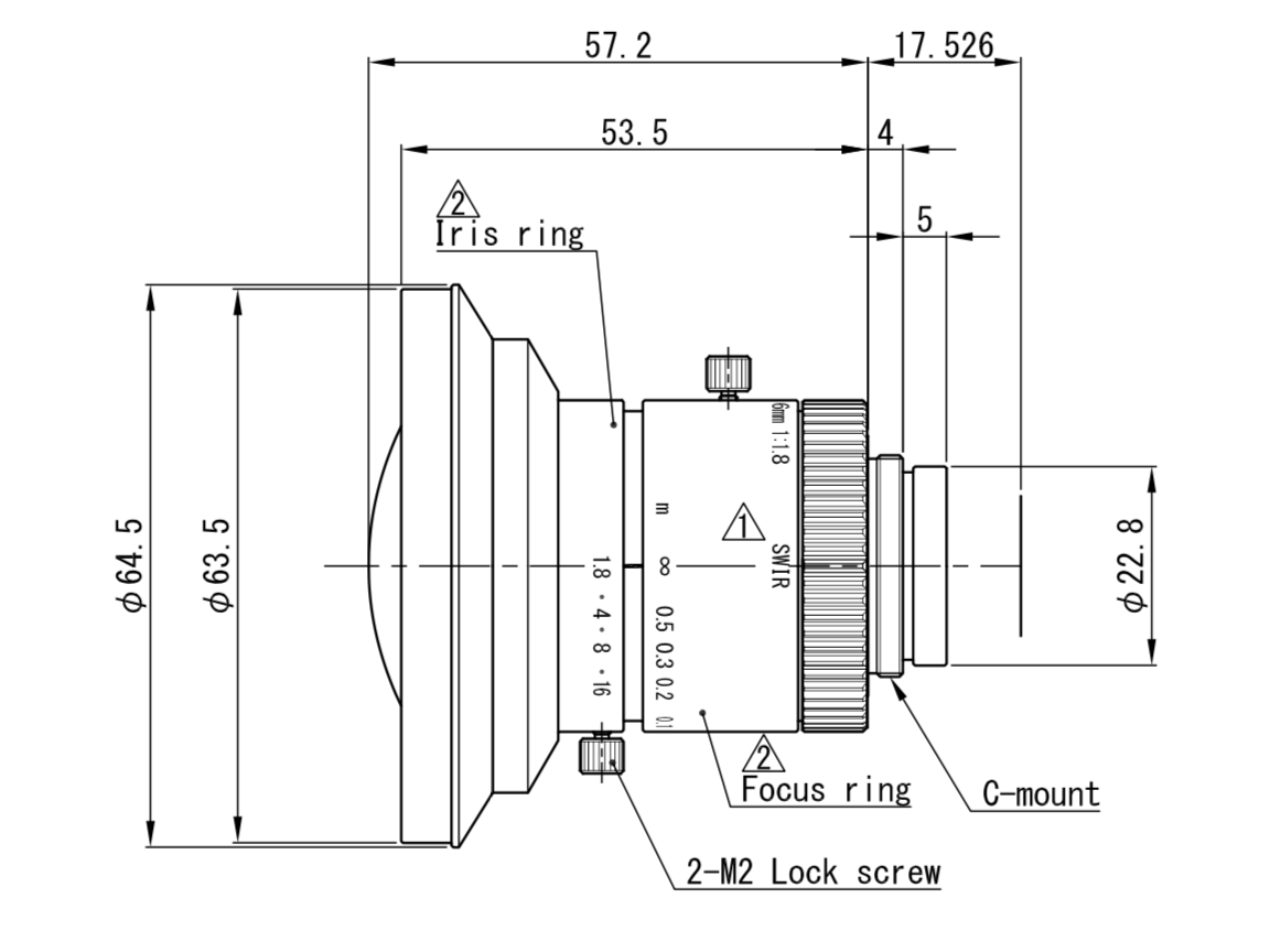 The VS-0618H1-SWIR, a distinguished model within the VS-H1-SWIR Series of Fixed Focal Length Lenses. With a focal length of 6mm and a minimum object distance (M.O.D) of 100mm, this lens is meticulously designed to deliver exceptional imaging performance. Boasting an aperture range from F1.8 to F16, the VS-0618H1-SWIR excels in capturing detailed and high-quality images across a spectrum of lighting conditions. The C-mount configuration enhances versatility and compatibility, ensuring seamless integration with a variety of imaging setups. Whether applied in industrial, scientific, or surveillance applications, the VS-0618H1-SWIR exemplifies the advanced features of the VS-H1-SWIR Series, providing reliable and precise Fixed Focal Length capabilities for Short-Wave Infrared imaging.