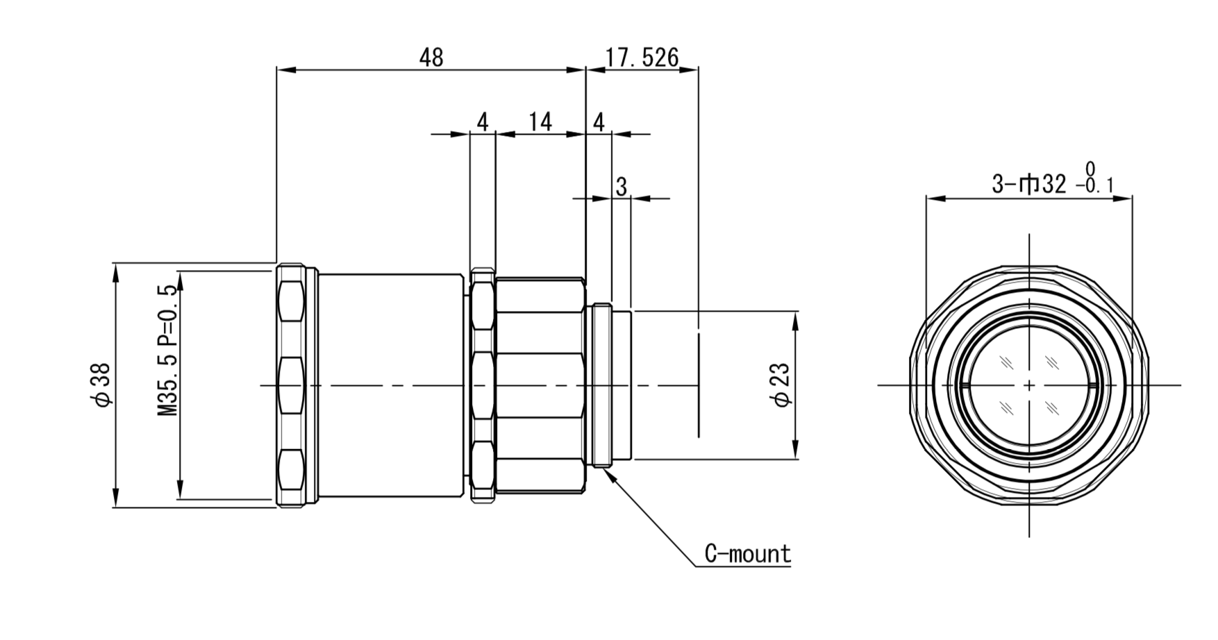 | Camera mount | C-mount |