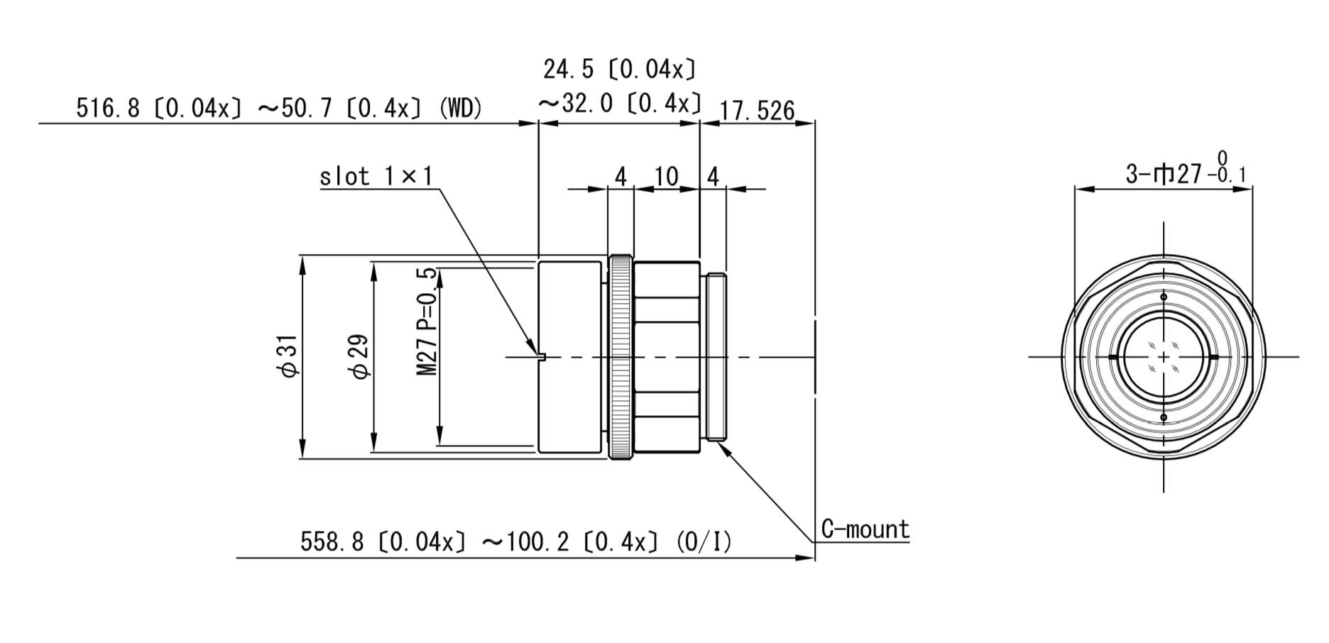 | Optical mag. range | x 0.04 ~ × 0.4 | |||