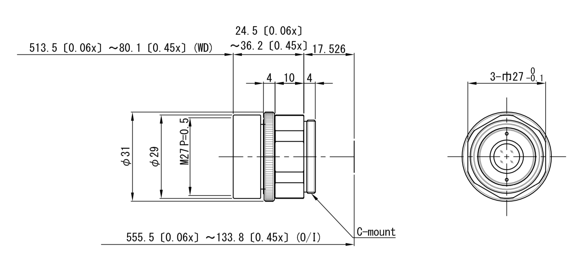 | Optical mag. range | x 0.06 ~ × 0.45 | |||
