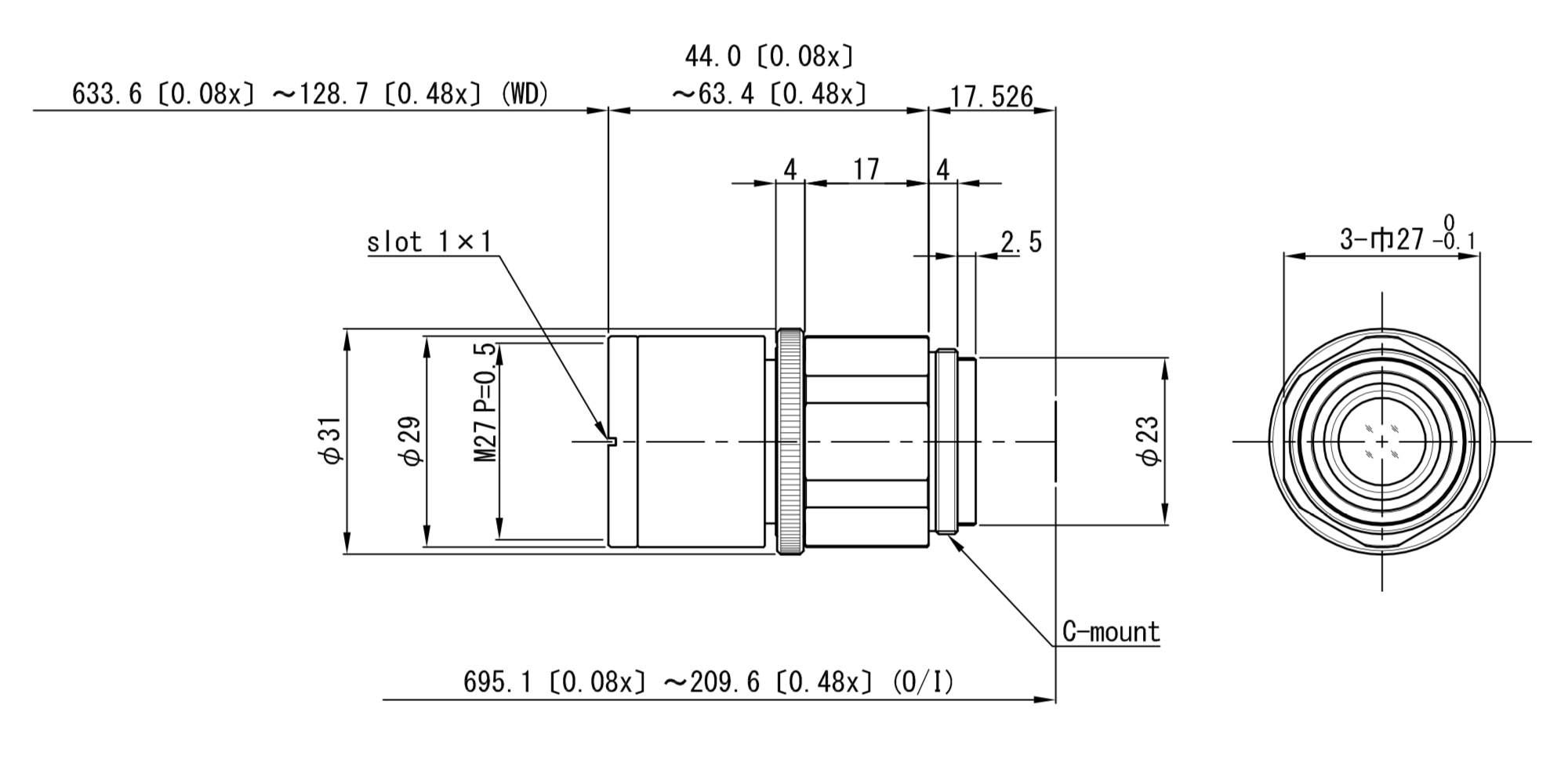 | Optical mag. range | x 0.08 ~ × 0.48 | |||