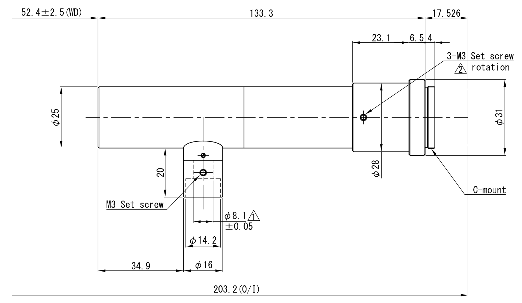 | Dimension | Φ 31 (MAX) × L=133.3 mm |