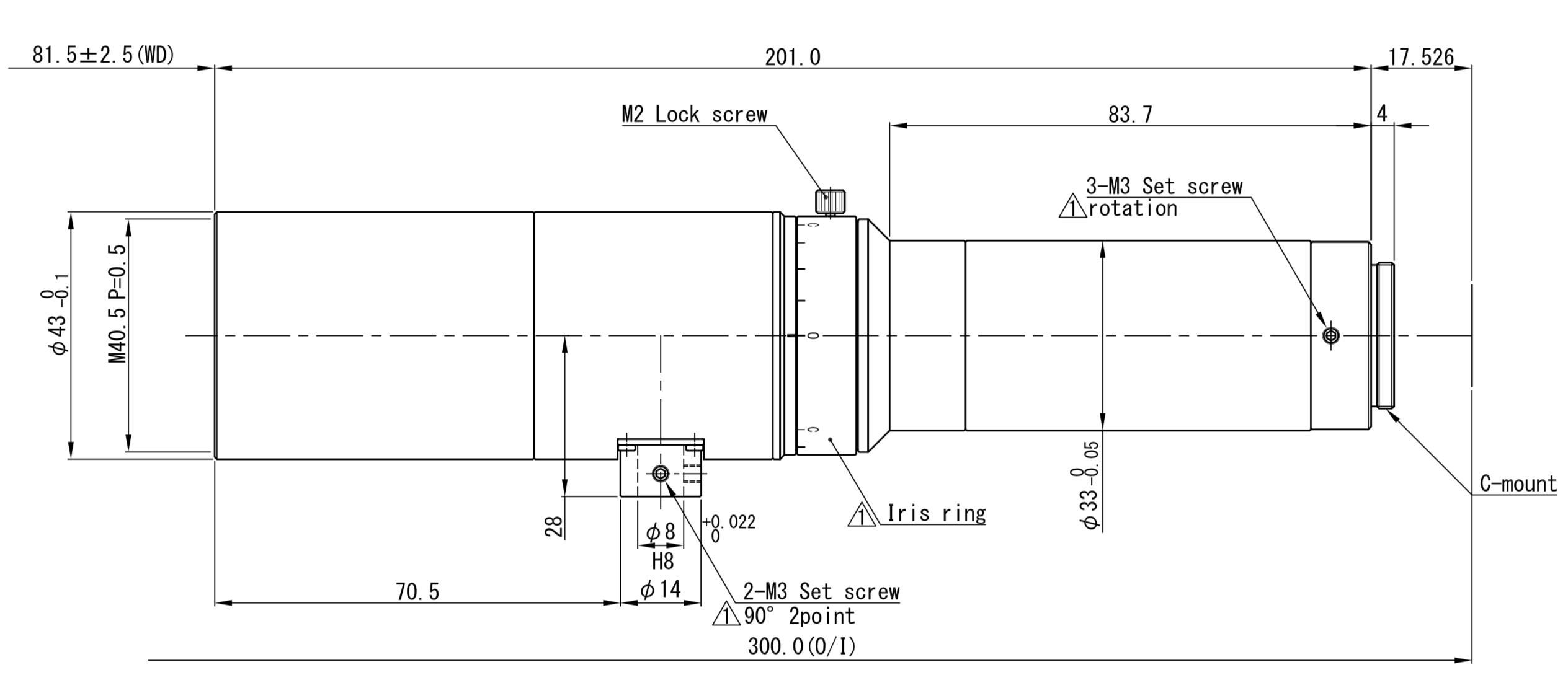 | Dimension | φ 43 (max.) × L= 202.5 mm | |