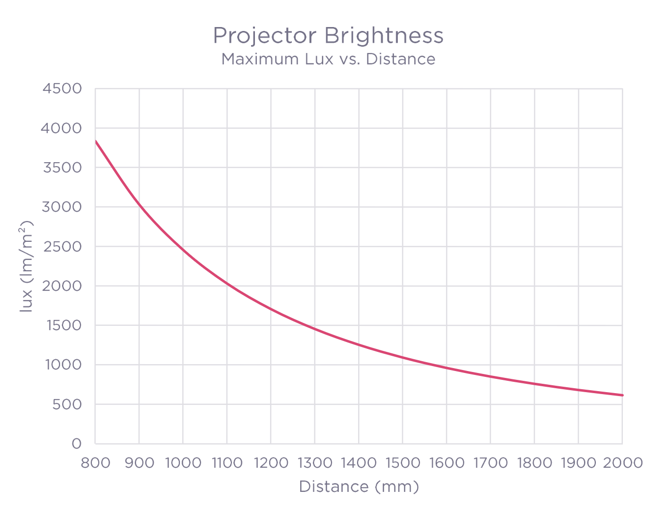 | Projector Brightness | 1.0x to 2.5x (in 3D mode) 1.0x to 2.5x (in color 2D mode) 0.0x to 2.5x (in greyscale 2D mode) 1x = 360 lumens 2.5x = 900 lumens (max) |